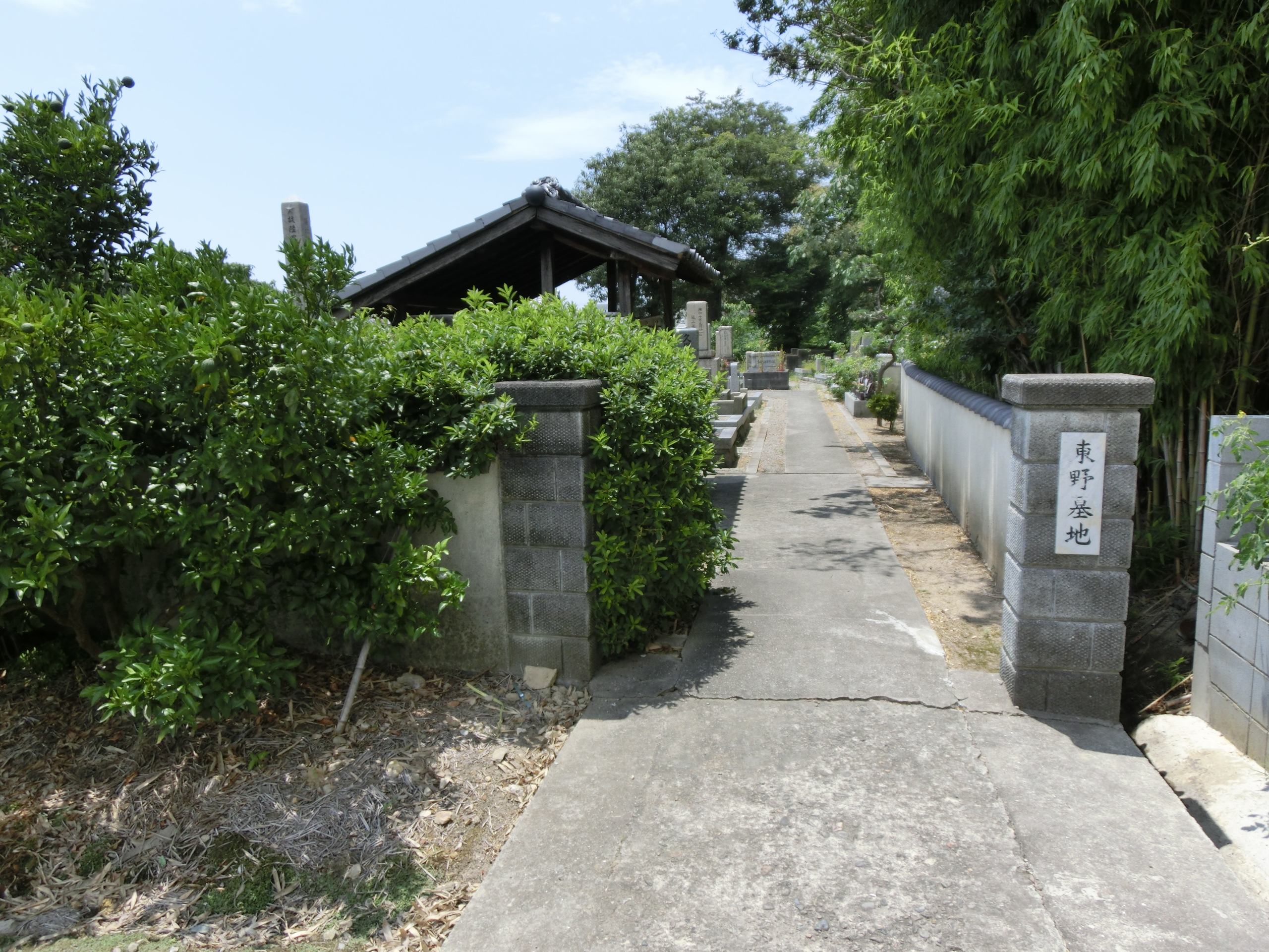 東野地域にあります。したがって東野墓地と名称されています。よって、こちらの地区の先祖が眠るお墓が建ち並んでいます。また宗教を特には問うことは無い墓地です。なぜなら様々な信仰があるからです。そして出入口は東側に設けています。しかし開閉できるような正門は設備されておられません。つまりお墓参りは何時でも行けます。同様に良いポイントととして水汲場も完備されています。
